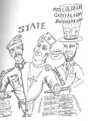 neo-colonial control by foreign powers which prop up dictatorial local elites, increasing repression and militarisation, cynical ideological manipulation of the people.
